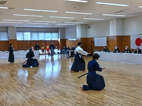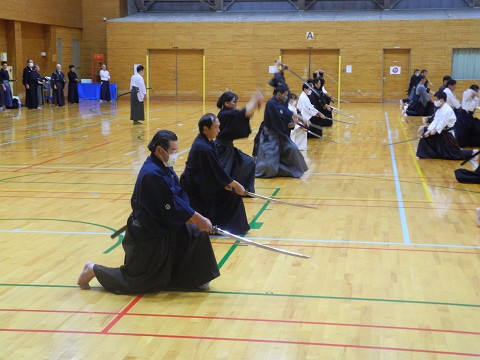 四方切り・組み太刀が行われた後、初心者の部・有段者の部・高段者の部の順で演武を行いました。