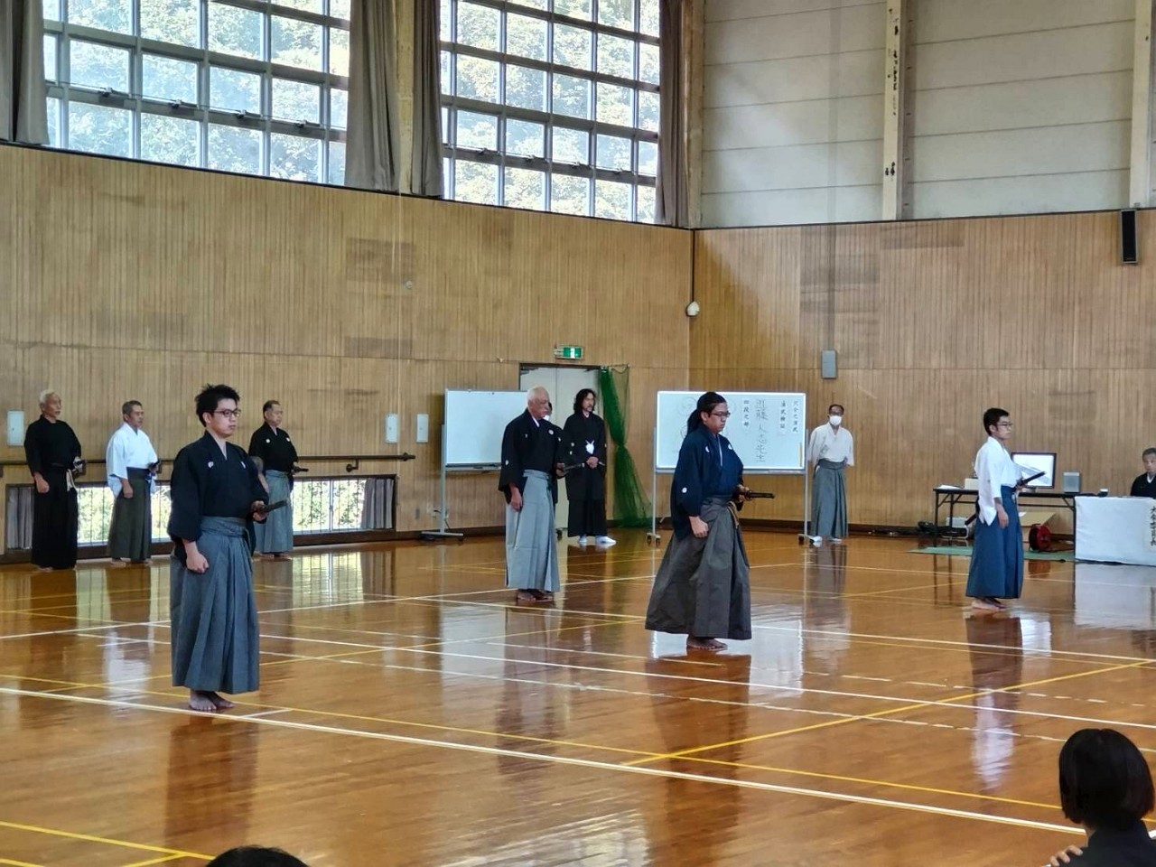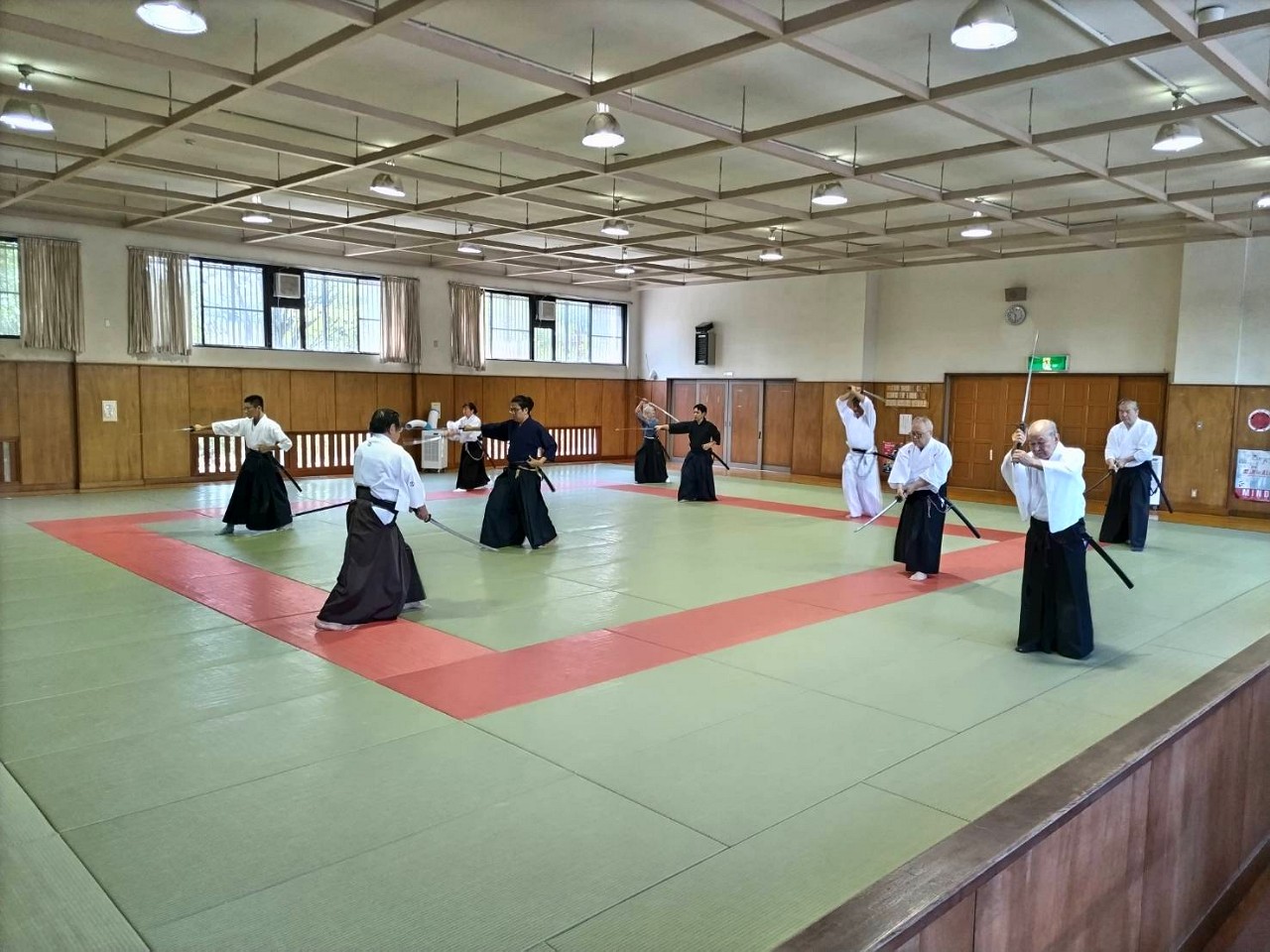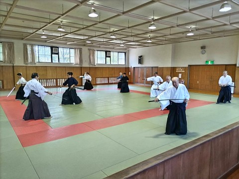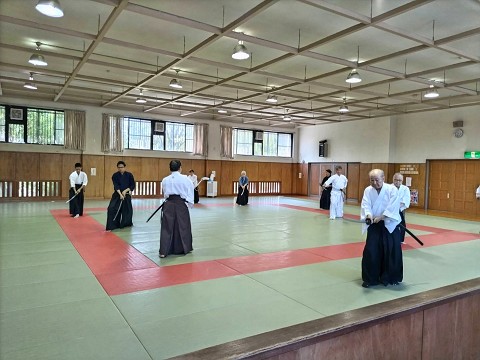 8月11日は、県内より知り合いの剣士や、宗家関係の先生等が練習に参加されました。この日は、コロナ禍以来でもっとも力強い稽古ができ、皆、清々しい汗を流しました。(一同と一緒に汗をかくことに、喜びを感じられる日でありました。)