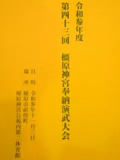 2021年11月3日に、橿原神宮公苑内第2体育館において「第43回 橿原神宮奉納演武大会」が行われました。コロナ禍の影響もあり、例年とは違う形式で行われました。